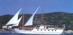 Nicolas A is a fully air-conditioned motor sailer accommodating 30 guests. She has a total of 15 comfortable staterooms with private facilities. The upper deck is outfitted with a bar. Seating area and ample space for relaxing and sunbathing, while admiring the enchanting view. The crew of seven has separate quarters. |